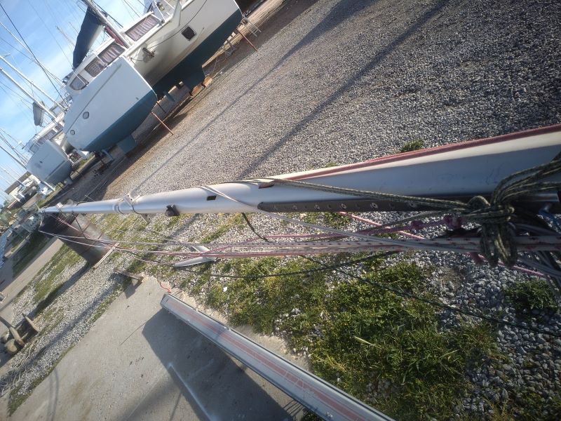 Démâtage, contrôle des éléments, changement des câbles datant de 2007, en collaboration avec Promosails à PSL .